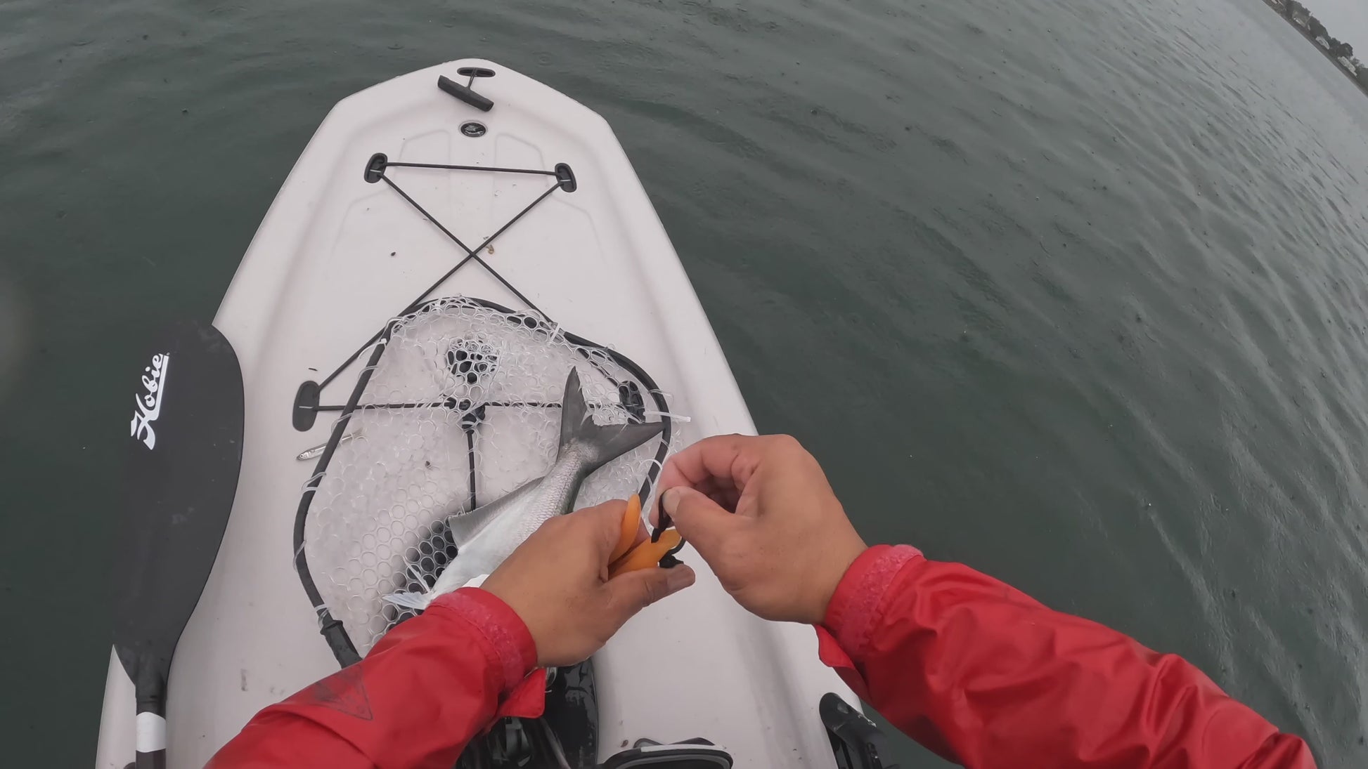 - It also comes with a bungee cord that secures to your wrist , The bungee cord can also lock the jaws close. At the same time the its smooth surface will not damage the lips of the catch.